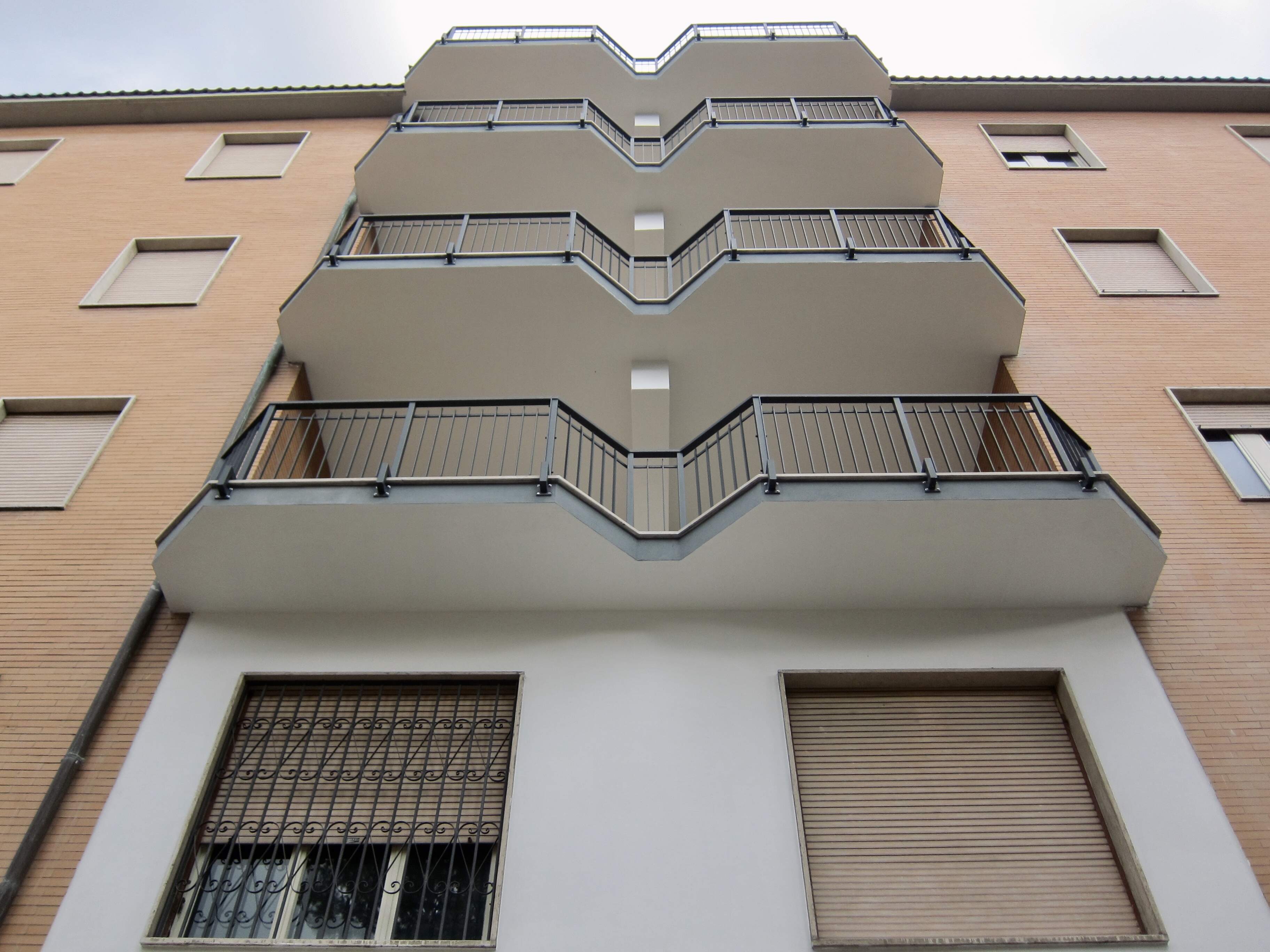 Siamo intervenuti con l'iniziale demolizione dei frontalini, delle pavimentazioni dei balconi privati e dei cornicioni condominiali e con la modifica e sverniciatura delle ringhiere. Successivamente, sono stati ripristinati i frontalini ed i cornicioni, sono stati impermeabilizzati i terrazzi privati. Infine, è stata eseguita la tinteggiatura di tutto l'edificio.